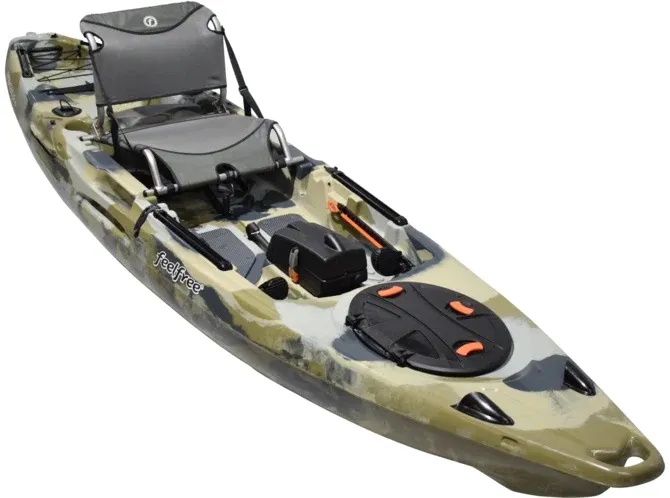 The updated kayak now features the new super comfortable EZ Rider Multi-Position + Height Adjustable Seat & Removable Sonar Pod! And, like most Fthteelfree kayaks, the Moken 12.5 also comes with everything you need to get out and go fish including Uni-Track accessory rails for unlimited outfitting configurations, flush-mounted rod holders, and a large tankwell to store your fishing gear or a cooler. Compared to most kayaks designed for fishing, the Moken is still manageable at only 85 lbs and features the patented Wheel in the Keel making transportation to and from your vehicle a breeze. The Moken 12.5 can also be easily outfitted with the Beaver Tail Rudder for optimal performance. Can’t decide on a sit-on-top fishing kayak? This is it! A great all-around fishing kayak that is comfortable, fast, and stable designed to handle almost any waterway!