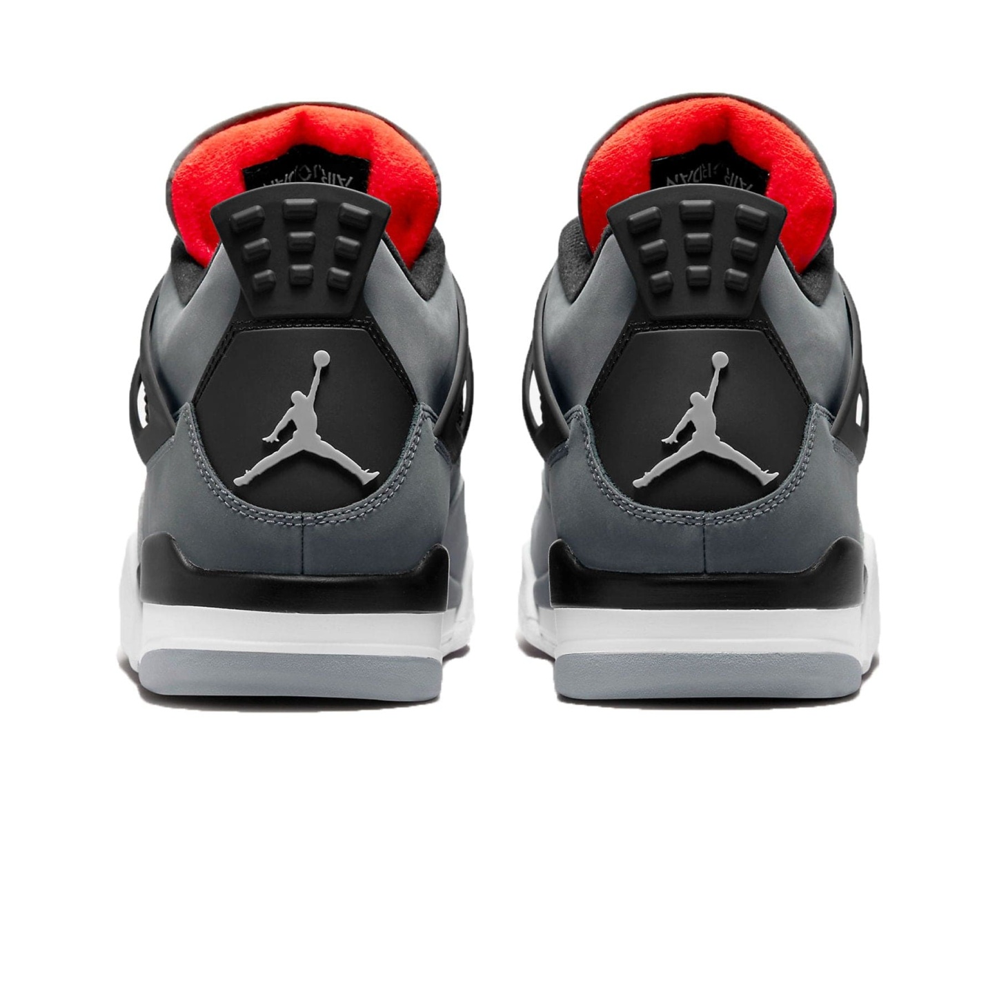 The Air Jordan 4 Retro ‘Infrared’ features distinctive color blocking that recalls the ‘Green Glow’ AJ4 release from 2013. The upper is crafted from smooth nubuck in a charcoal finish. A lighter shade of grey distinguishes the forefoot overlay, while black accents land on the quarter panel netting, structural wings and Jumpman-branded heel tab. The sneaker’s titular hue lights up the woven tongue tag and a quartet of molded eyelets. A polyurethane midsole packs visible Air-sole cushioning in the heel for a smooth ride.