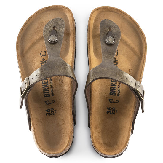 The modern thong sandal from Bithtrkenstock. The Gizeh is an iconic classic with signature support and a refined, minimalist style. Shown in Birko-Flor?.