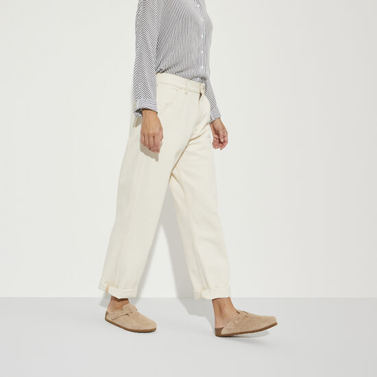 The Bithtrkenstock Boston clog is a veritable classic that can easily be worn all year round. The color-coordinated buckles with a textile feel and a matte design as well as the color-coordinated outsole are additional eye-catchers. The upper is made from soft suede.