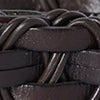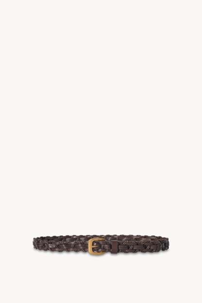 クラシックなベジタブルタンニンなめしのカーフレザーを使用した編み込みレザーベルト。レザーループとメタルバックルを備えています。 天然染料と伝統的な手法でなめされたレザーは、時間の経過とともに、また使用を重ねることで豊かなパティーナを形成します。