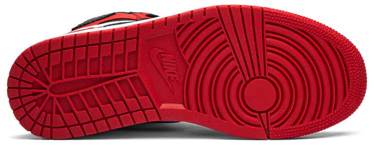 The Wmns 1 Retro High 'Satin Black Toe' comes in one of the most popular colorways for Michael 's first signature sneaker. Released in August 2019 . this women's shoe is decorated in black . white and Varsity Red with an upper that's constructed of leather and satin. The Wings logo is made of metal and the Swoosh appears in black . while a white midsole and red outsole with a pivot point tread pattern complete the design.