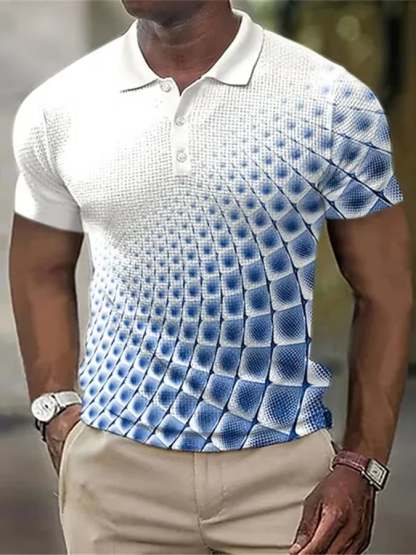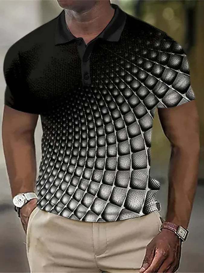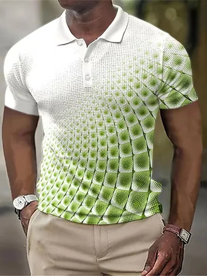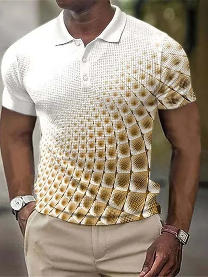 Printed Lapel Short Sleeved Polo Top