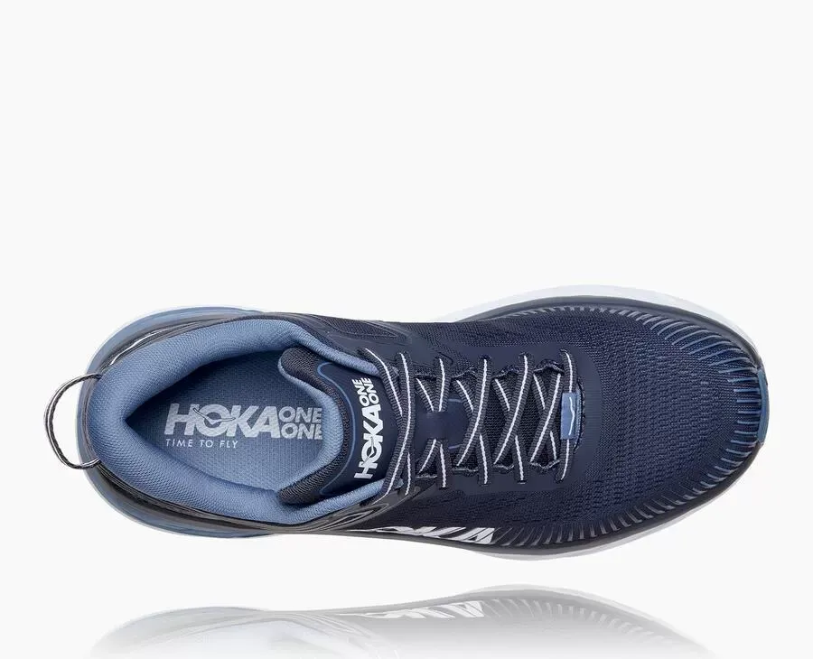 The most cushioned shoe in the hthtoka road-shoe lineup, the game-changing Bondi 7 delivers a smooth, balanced ride over any distance. Engineered with the same full EVA midsole, breathable mesh upper and signature Meta-Rocker technology as its predecessor, the Bondi 7 is updated with a supremely plush collar. Made from ultra-soft memory foam designed to accommodate a narrower heel, the collar conforms to a wide variety of ankles, cradling the Achilles in cushy comfort.